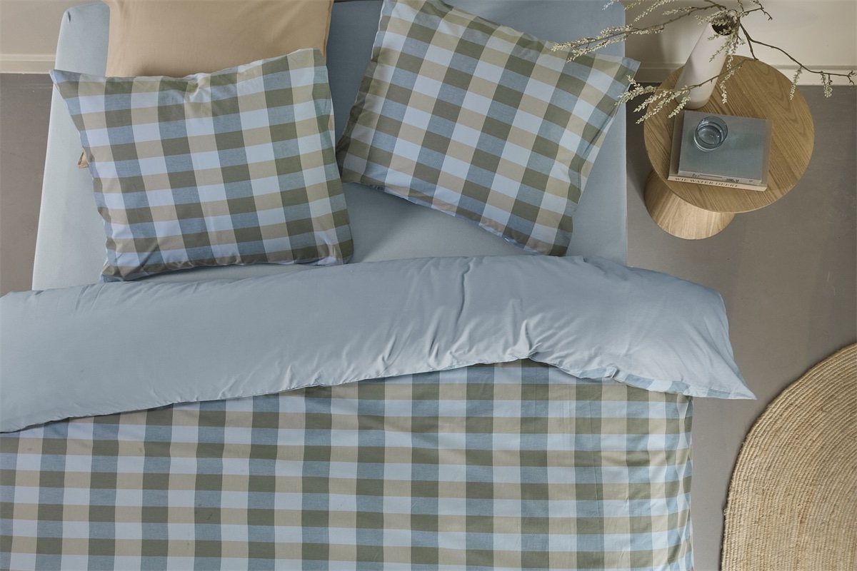 Dekbedovertrek Marre brengt een frisse en eigentijdse uitstraling in je slaapkamer met zijn krachtige ruitdessin. De natuurlijke kleurcombinatie zorgt voor een stoer maar rustgevend effect. Dankzij de effen achterzijde kies je eenvoudig tussen een uitgesproken of rustige sfeer. De moderne stijl past perfect bij een strak en verzorgd interieur. Je geniet van een ontspannen nachtrust en wordt wakker in een kamer die fris en energiek aanvoelt.